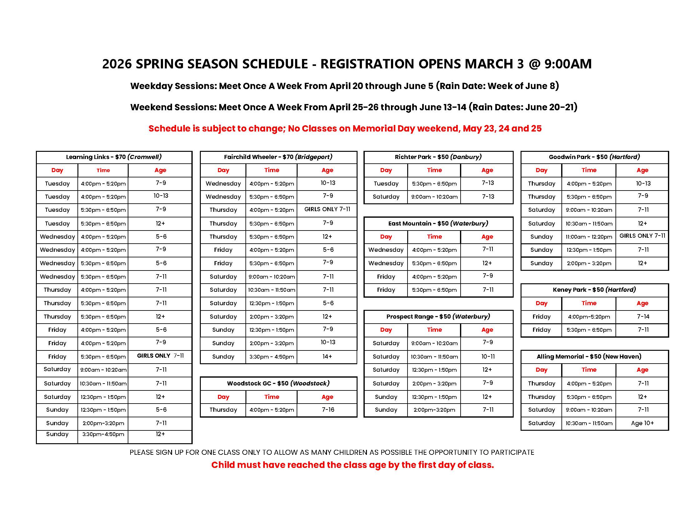 - Click here to view a printable version of 2026 Spring Schedule